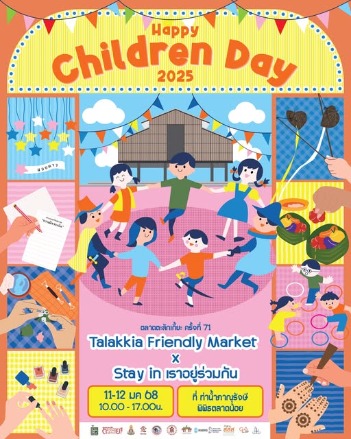 ตลาดตะลักเกี้ยะครั้งแรกของปี 2568 ซึ่งรอบนี้ตรงกับวันเด็กด้วย ทางตลาดเราได้เตรียมกิจกรรมแบบแน่นสุด ๆ ไว้รอต้อนรับน้อง ๆ เลยค่ะ โดยครั้งนี้เราได้กลุ่ม “Stay in เราอยู่ร่วมกัน” มาร่วมสนุกกันด้วย จะมีกิจกรรมอะไรบ้าง
