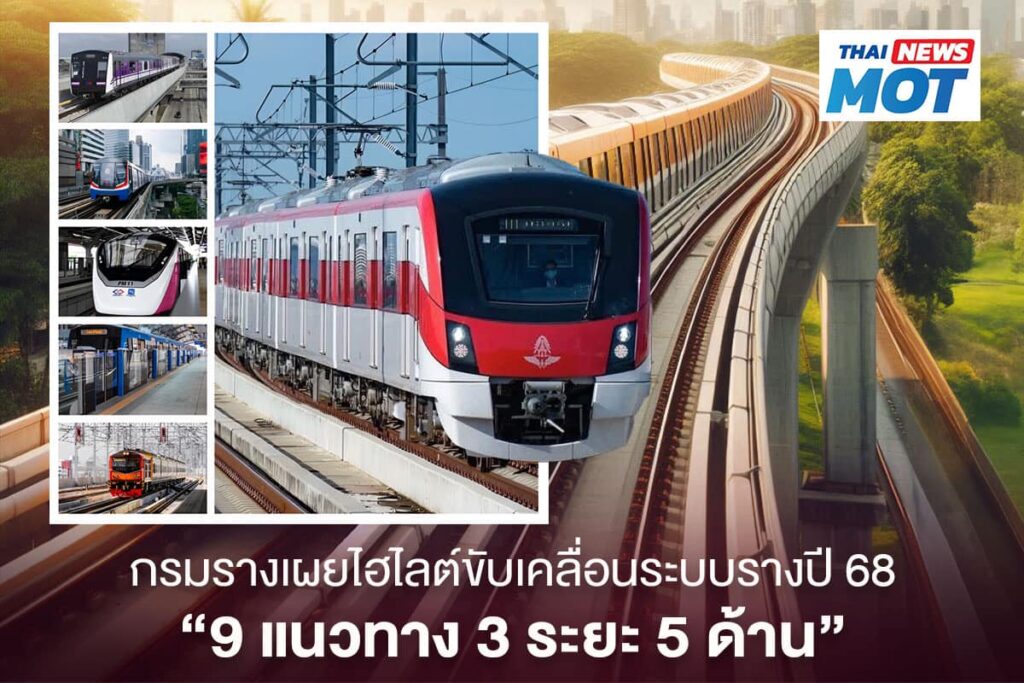 กรมการขนส่งทางราง ตั้งเป้าหมายในการพัฒนาระบบขนส่งทางรางตามนโยบายของรัฐบาลในปี 2568 โดยใช้แนวทาง “9 แนวทาง 3 ระยะ 5 ด้าน” ซึ่งมีการดำเนินการที่สำคัญหลายประการเพื่อพัฒนาระบบรางในประเทศ