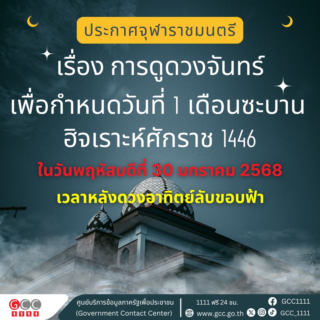 เพื่อให้การกำหนดวันที่ 1 เดือนซะบาน ฮิจเราะห์ศักราช 1446 เป็นไปด้วยความเรียบร้อยจึงประกาศให้พี่น้องชาวไทยมุสลิมทั่วประเทศดูดวงจันทร์ ในวันพฤหัสบดีที่ 30 มกราคม พ.ศ. 2568 เวลาหลังดวงอาทิตย์ลับขอบฟ้า