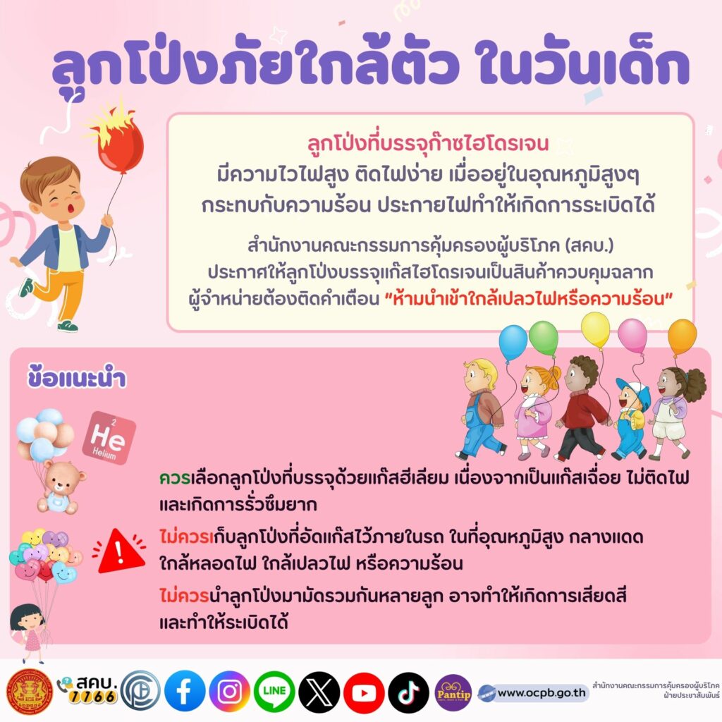 • สำนักงานคณะกรรมการคุ้มครองผู้บริโภค เตือนภัย ลูกโป่งที่บรรจุก๊าซไฮโดรเจนมีความไวไฟสูง ติดไฟง่าย