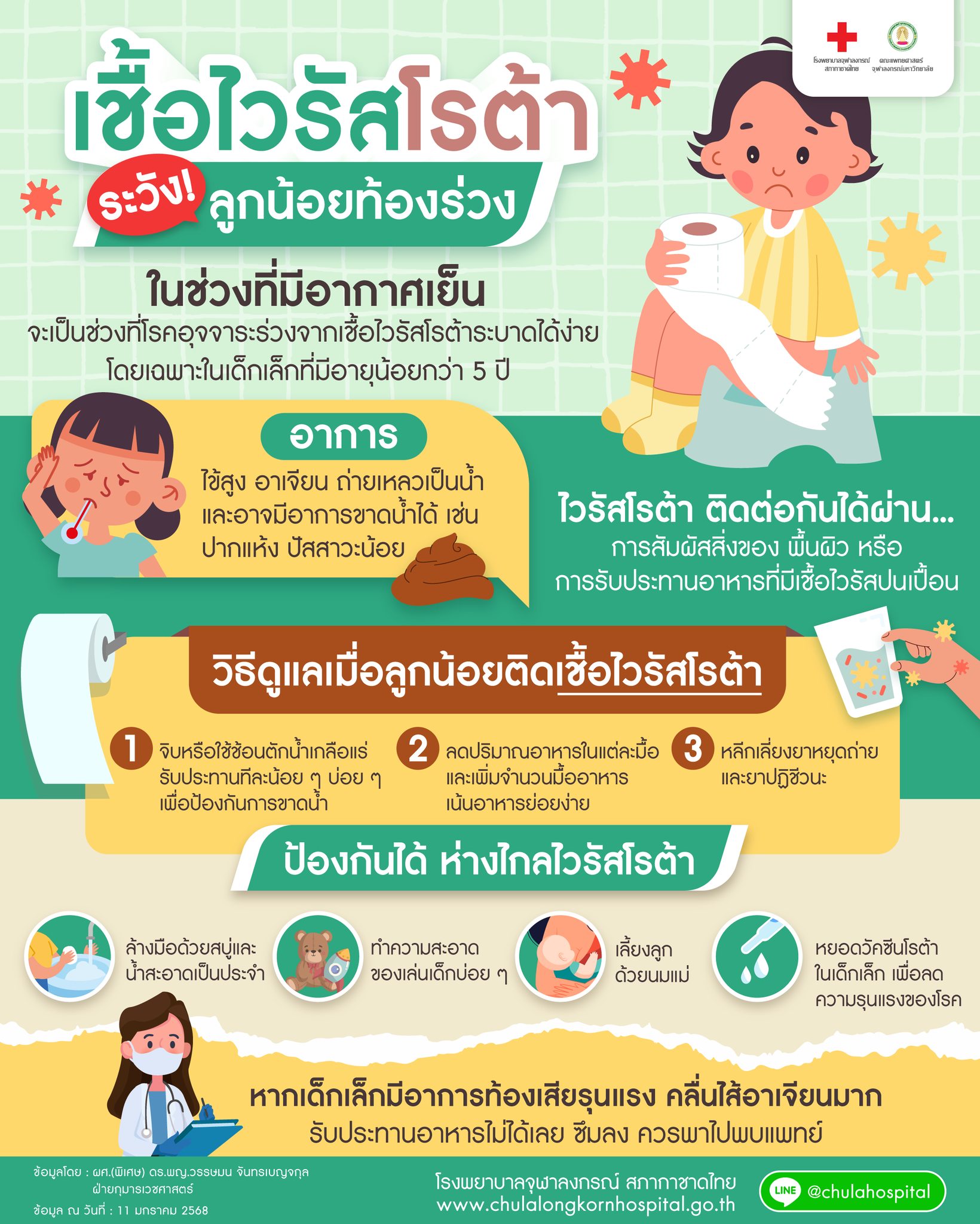 โรงพยาบาลจุฬาลงกรณ์ สภากาชาดไทย แนะนำเชื้อไวรัสโรต้า ระวังลูกน้อยท้องร่วง ช่วงฤดูหนาว