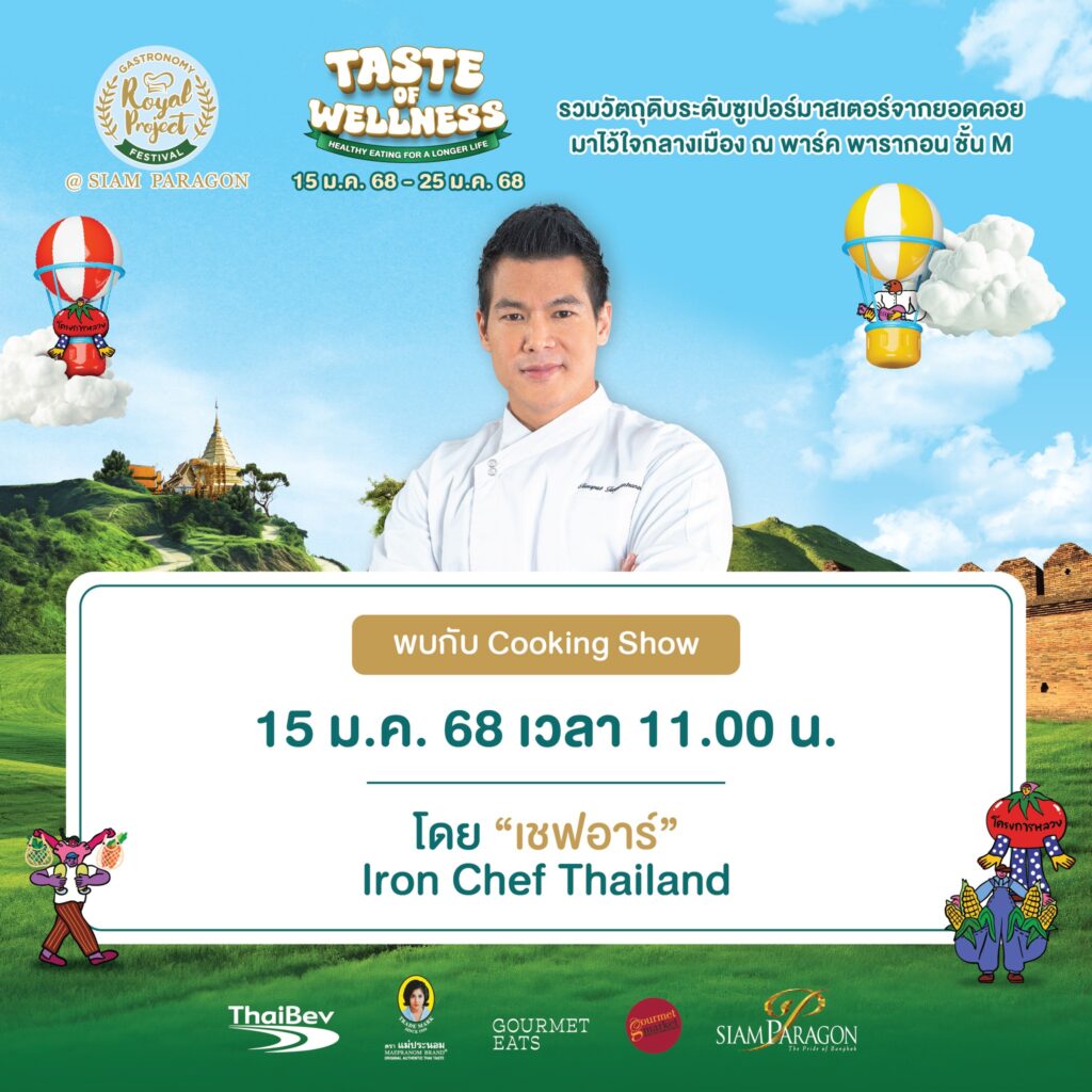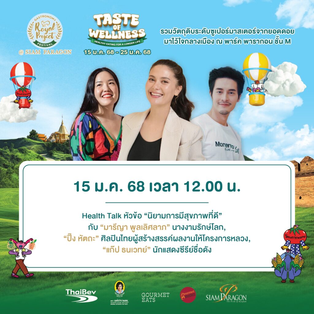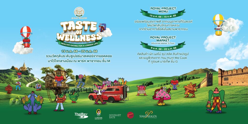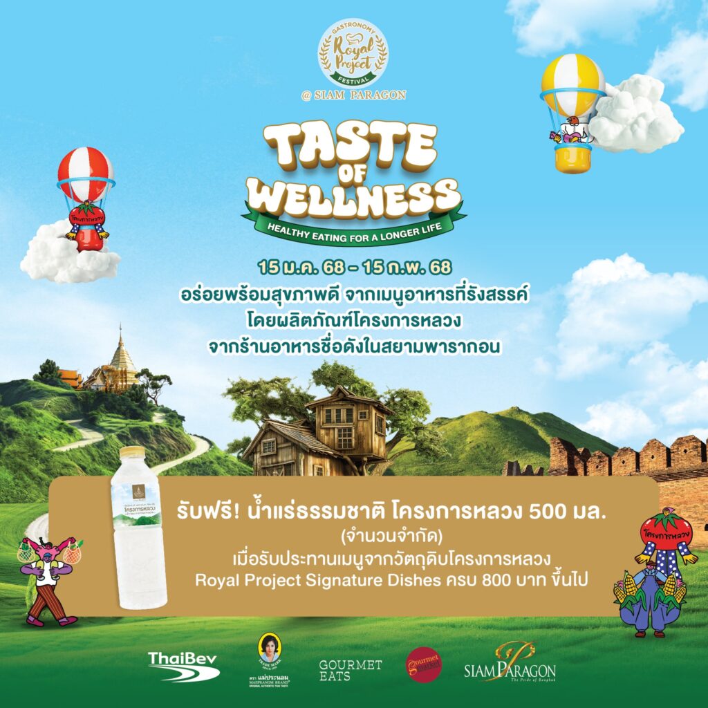 มูลนิธิโครงการหลวง ร่วมกับ สยามพารากอน, กูร์เมต์ มาร์เก็ต, บ.ไทยเบฟเวอเรจ จก. (มหาชน) และ บ.พิบูลย์ชัยน้ำพริกเผาไทยแม่ประนอม จก. เชิญร่วมงาน “Royal Project Gastronomy Festival 2025 @ Siam Paragon” ชวนคุณมาสร้างเสริมสุขภาพผ่านอาหาร ภายใต้คอนเซ็ปต์ Taste of Wellness: Healthy Eating for a Longer Life อาหารดี สุขภาพดี ปลุกพลังชีวีให้ยืนยาว ระหว่างวันที่ 15 – 25 มกราคม 2568 ณ พาร์ค พารากอน ชั้น M และ กูร์เมต์ มาร์เก็ต ชั้น G