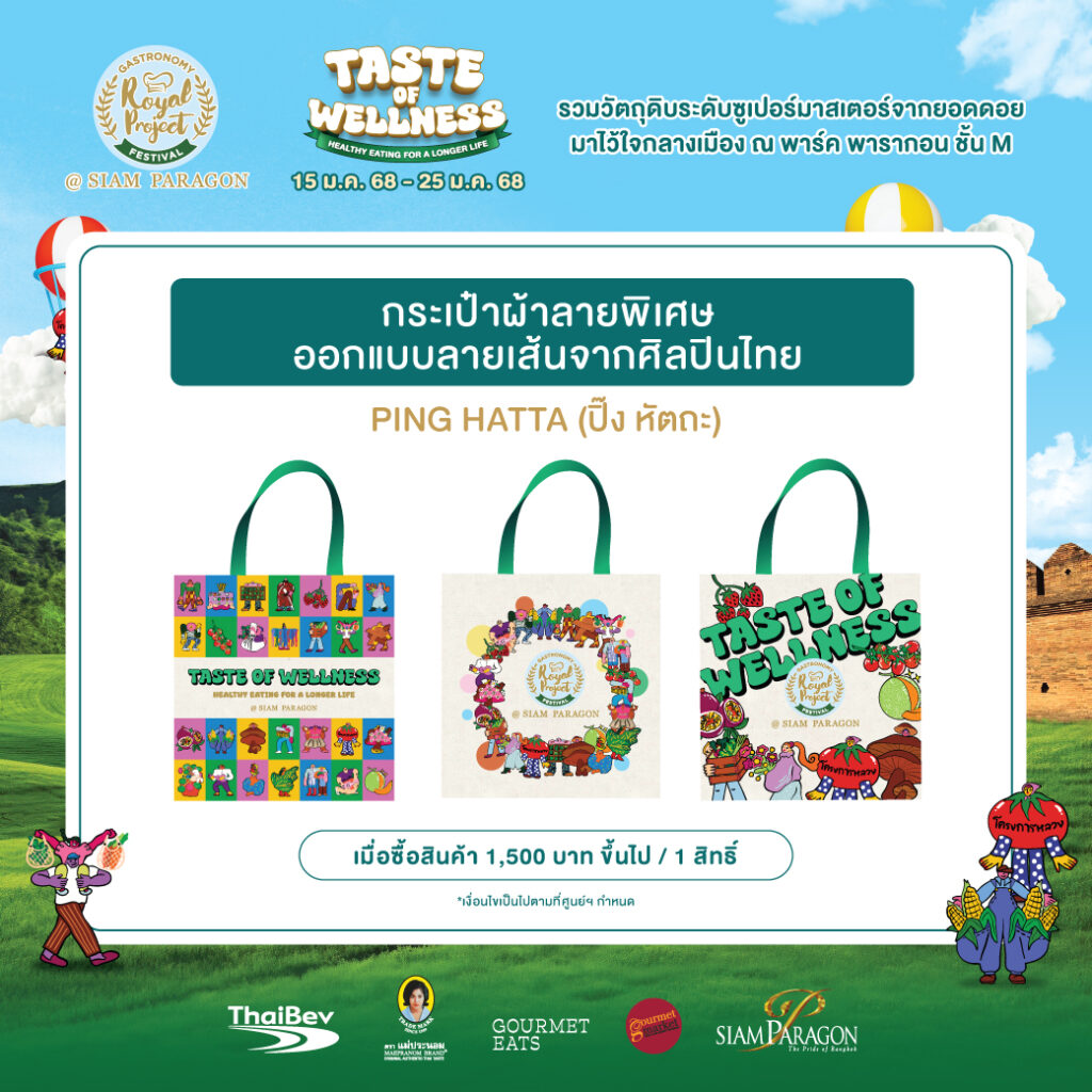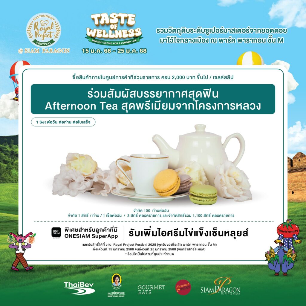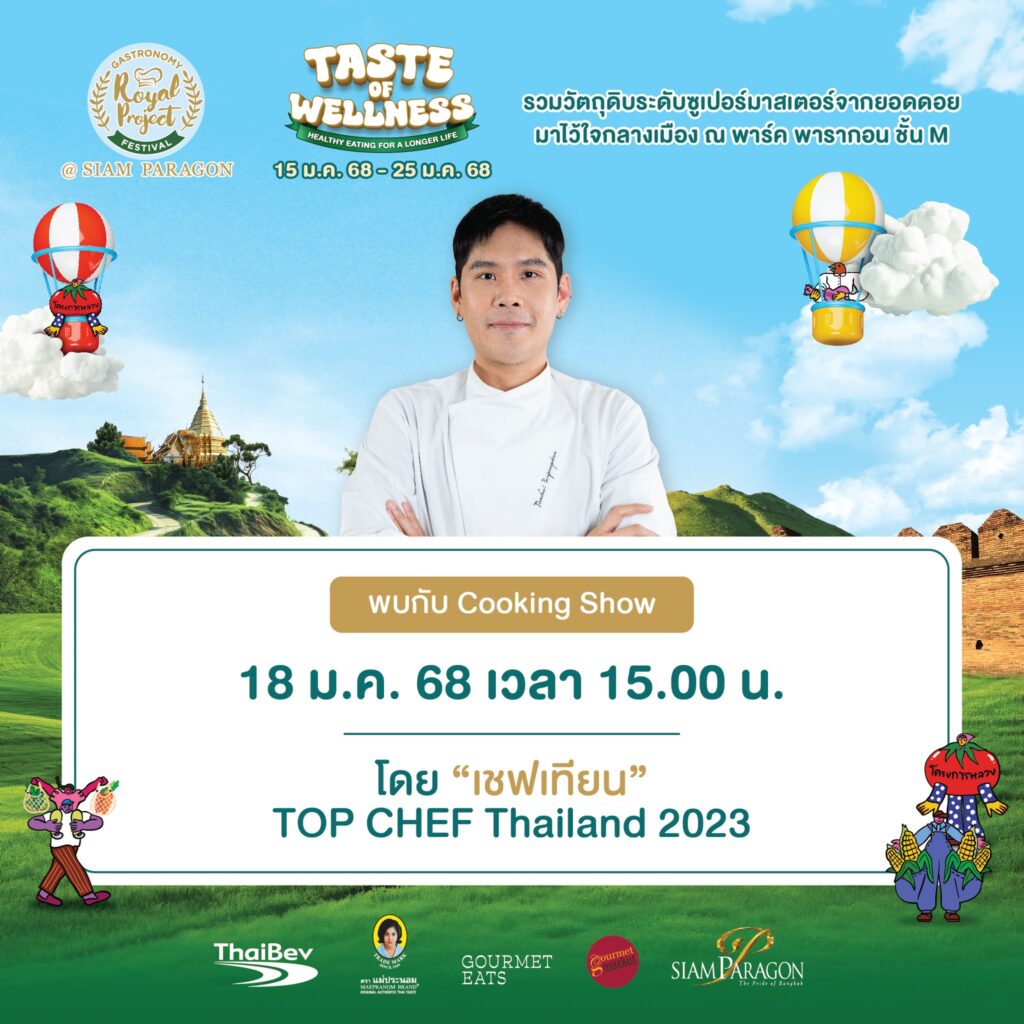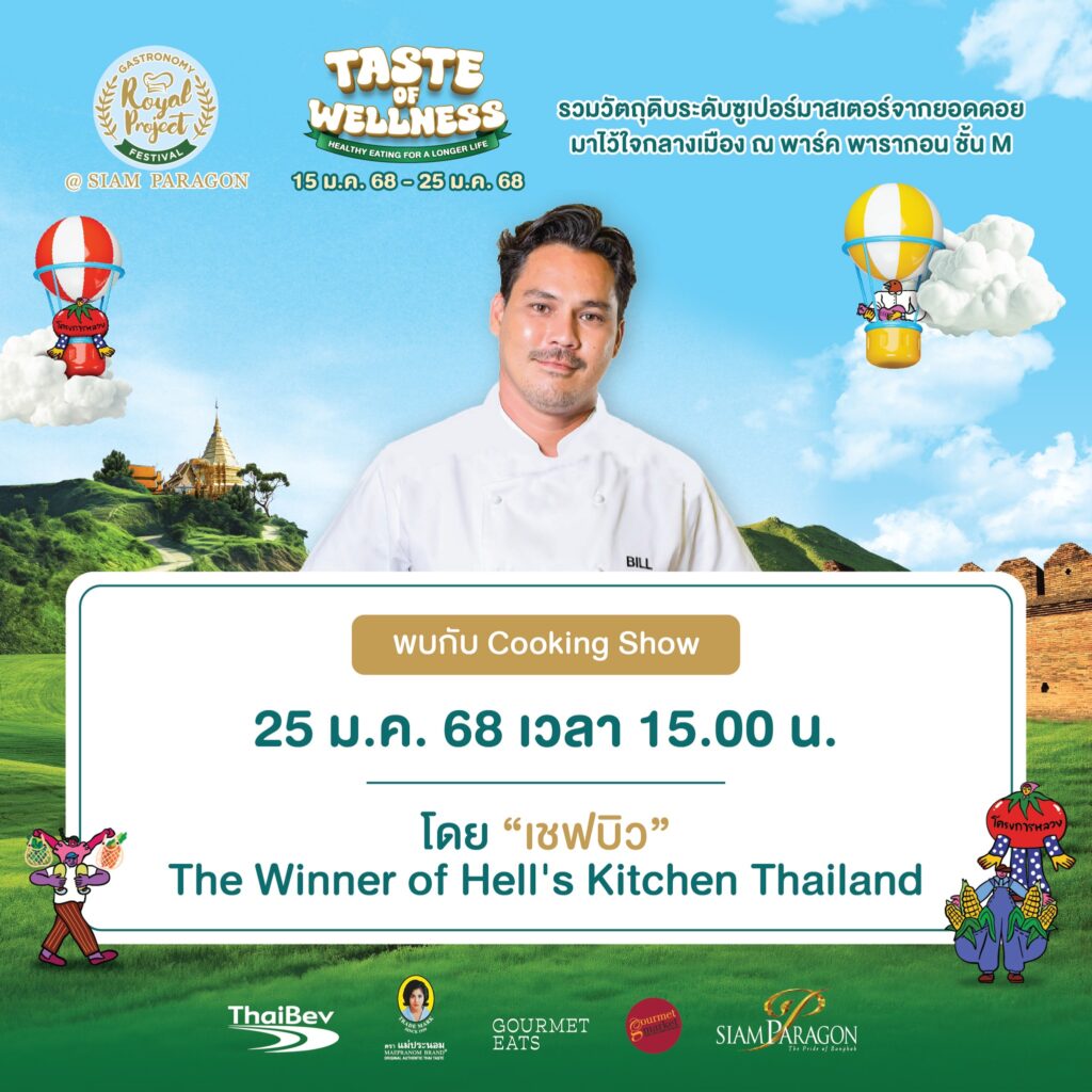 มูลนิธิโครงการหลวง ร่วมกับ สยามพารากอน, กูร์เมต์ มาร์เก็ต, บ.ไทยเบฟเวอเรจ จก. (มหาชน) และ บ.พิบูลย์ชัยน้ำพริกเผาไทยแม่ประนอม จก. เชิญร่วมงาน “Royal Project Gastronomy Festival 2025 @ Siam Paragon” ชวนคุณมาสร้างเสริมสุขภาพผ่านอาหาร ภายใต้คอนเซ็ปต์ Taste of Wellness: Healthy Eating for a Longer Life อาหารดี สุขภาพดี ปลุกพลังชีวีให้ยืนยาว ระหว่างวันที่ 15 – 25 มกราคม 2568 ณ พาร์ค พารากอน ชั้น M และ กูร์เมต์ มาร์เก็ต ชั้น G