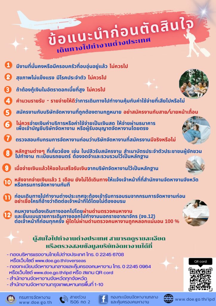 กรมการจัดหางาน เเนะนำก่อนตัดสินใจเดินทางไปทำงานต่างประเทศ