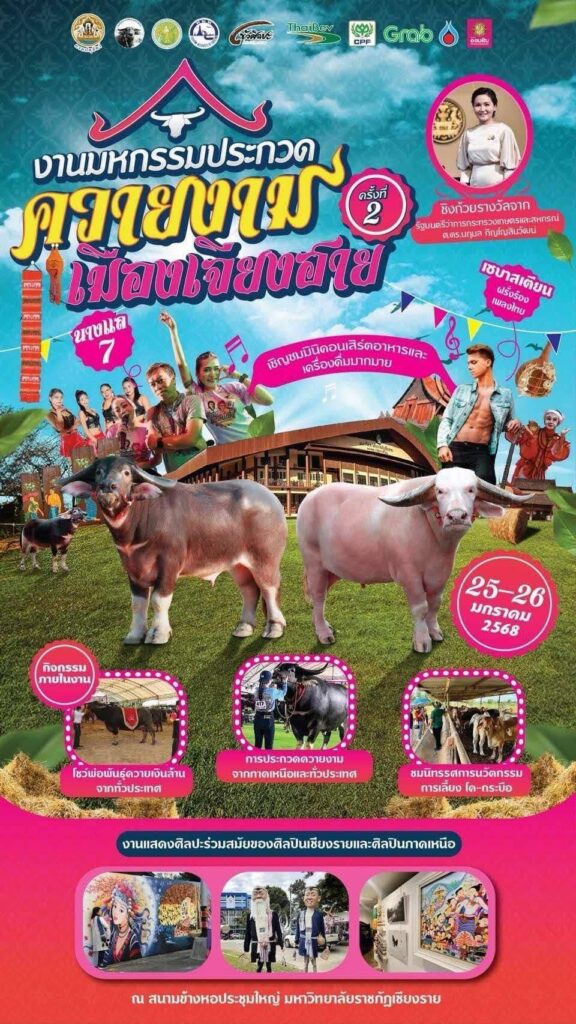 - กรมปศุสัตว์ ขอเชิญเที่ยวงาน “มหกรรมประกวดควายงามเมืองเจียงฮาย ครั้งที่ 2”