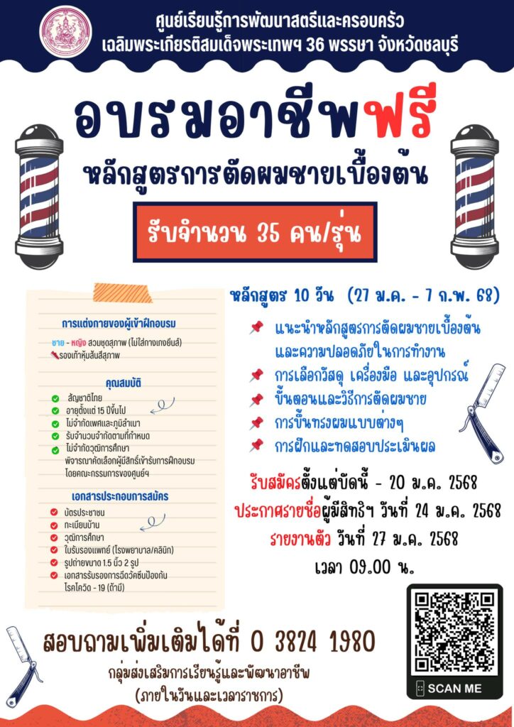 กรมกิจการสตรีและสถาบันครอบครัว เปิดรับสมัครหลักสูตรตัดผมเบื้องต้นฟรี วันที่ 27 ม.ค. – 7 ก.พ. 68