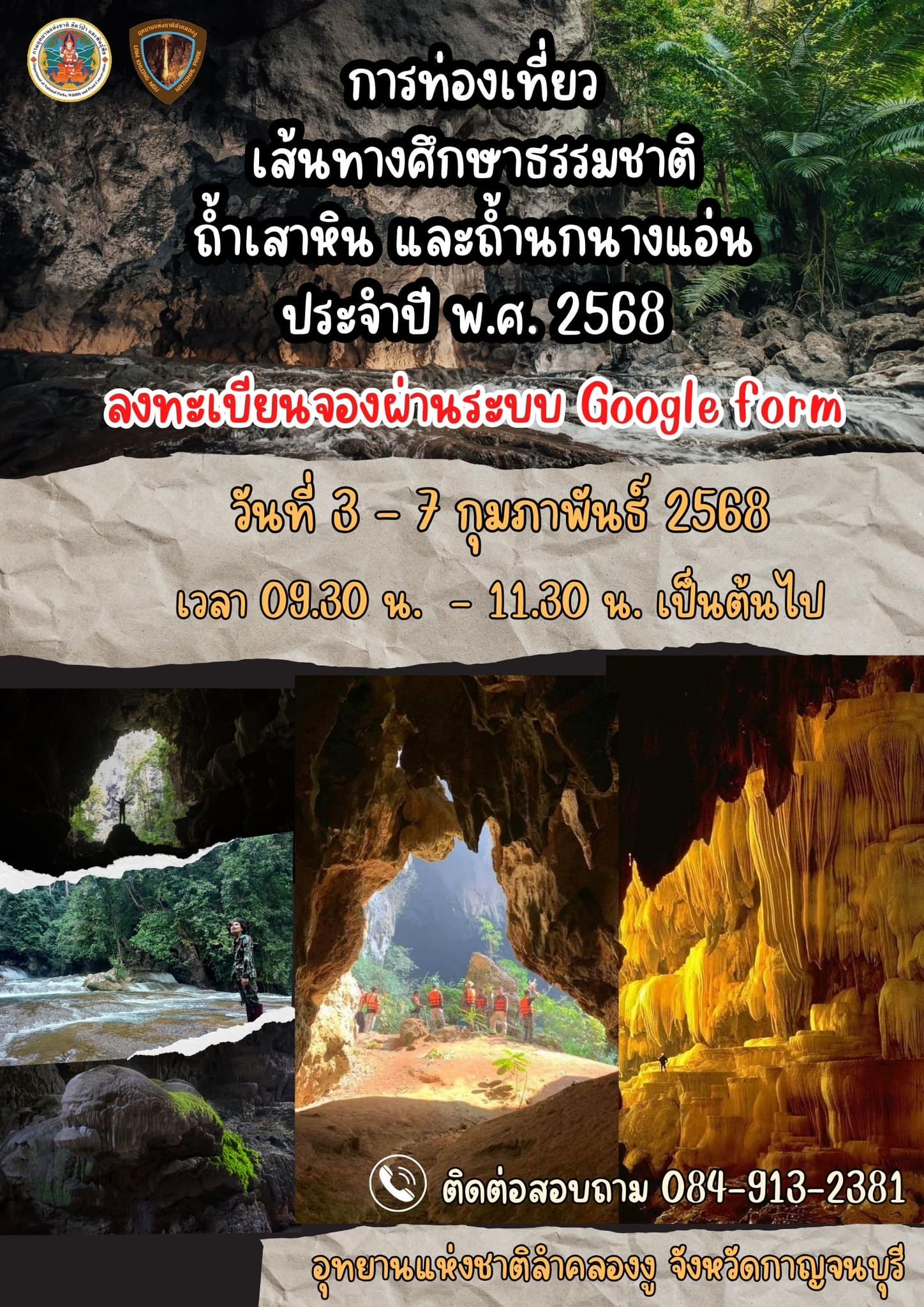 สำหรับผู้สนใจการท่องเที่ยวถ้ำเสาหิน และถ้ำนกนางแอ่น ประจำปี พ.ศ 2568 เริ่มลงทะเบียนผ่านระบบ Google Form ได้ตั้งแต่วันที่ 3 – 7 กุมภาพันธ์ 2568 ตั้งแต่เวลา 09.30 – 11.30 น.