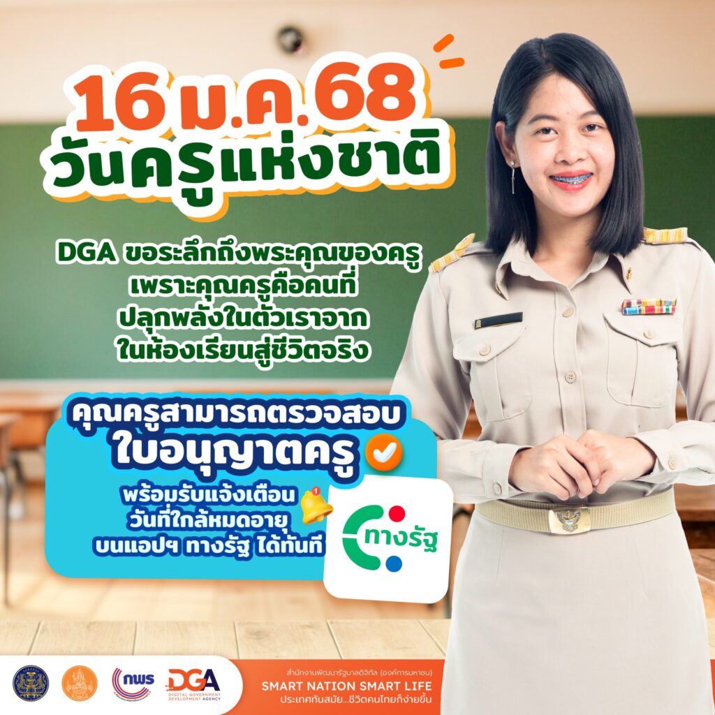 สำนักงานพัฒนารัฐบาลดิจิทัล อำนวยความสะดวกให้แก่ครูและบุคลากรทางการศึกษา สามารถตรวจสอบสถานะและความถูกต้องของใบอนุญาตประกอบวิชาชีพทางการศึกษา ผ่านแอปพลิเคชันได้แล้วตั้งแต่บัดนี้เป็นต้นไป