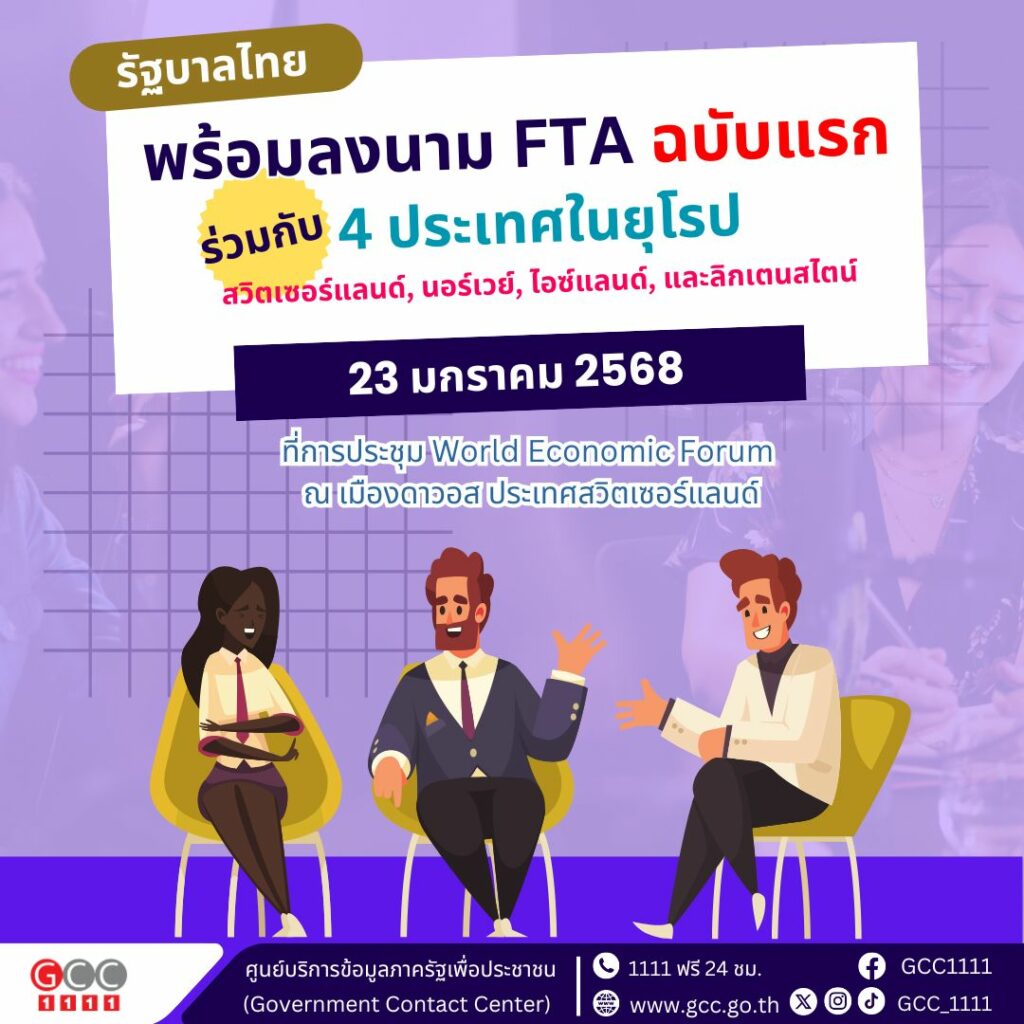 รัฐบาลไทย พร้อมลงนาม FTA ฉบับแรกกับ 4 ประเทศในยุโรป วันที่ 23 ม.ค.68 ที่เมืองดาวอส สวิตเซอร์แลนด์
