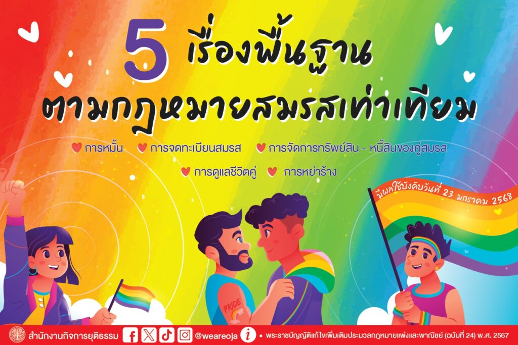 สำนักงานกิจการยุติธรรม แนะนำความรู้ 5 เรื่องพื้นฐานตามกฎหมายสมรสเท่าเทียม