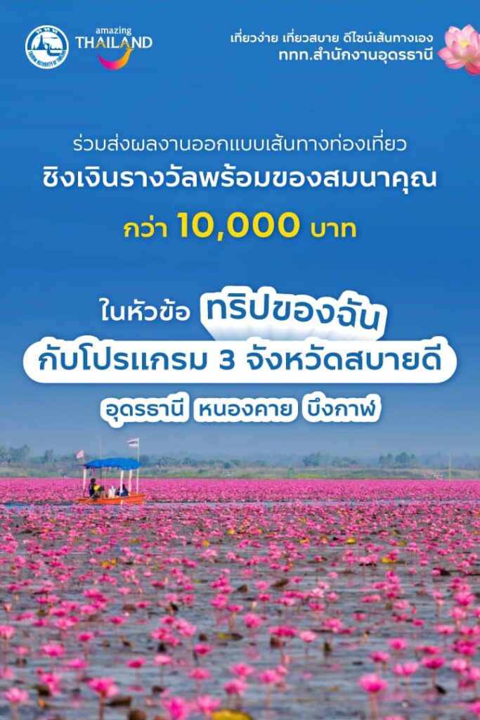 ททท.สำนักงานอุดรธานี เชิญชวนออกแบบโปรแกรมท่องเที่ยว 3 จังหวัด ชิงเงินรางวัลกว่า 10,000 บาท