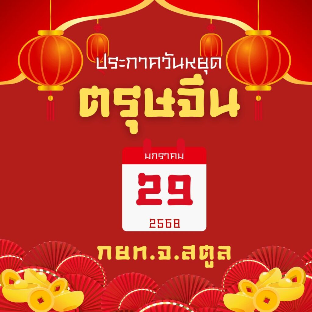 การยางแห่งประเทศไทย จังหวัดสตูล แจ้งวันหยุดเนื่องในวันตรุษจีน วันที่ 29 ม.ค. 68
