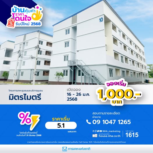 การเคหะแห่งชาติ เปิดจองโครงการเคหะชุมชนและบริการชุมชนมิตรไมตรี บัดนี้ – 26 มกราคม 2568