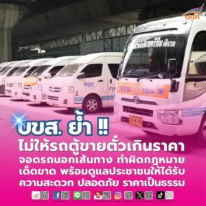 บริษัท ขนส่ง จำกัด ย้ำไม่ให้รถตู้ขายตั๋วเกินราคา จอดรถนอกเส้นทาง และทำผิดกฎหมายเด็ดขาด พร้อมดูแลประชาชนให้ได้รับความสะดวก – ปลอดภัย – ราคาเป็นธรรม