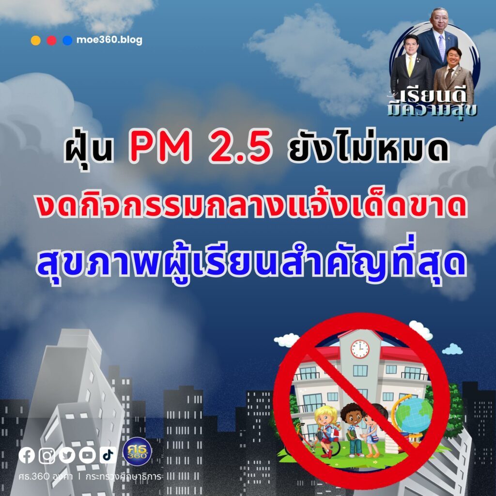 ศธ. กำชับ ฝุ่น PM 2.5 ยังไม่หมด งดกิจกรรมกลางแจ้งเด็ดขาด สุขภาพผู้เรียนสำคัญที่สุด