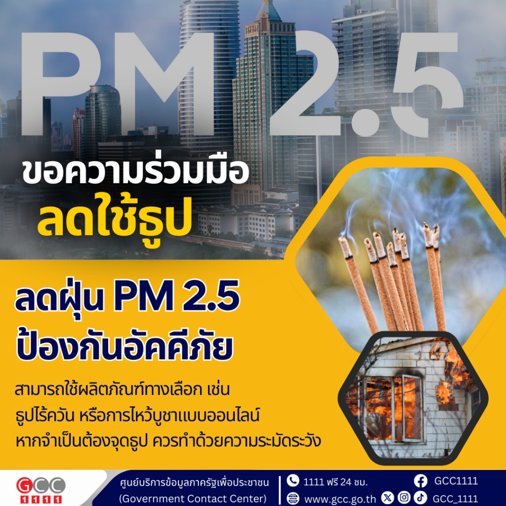 รัฐบาล ขอความร่วมมือ ตรุษจีนลดใช้ธูป แนะนำทางเลือกปลอดภัย ลดฝุ่น PM 2.5 – ป้องกันอัคคีภัย