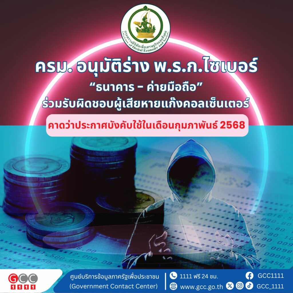 ครม. อนุมัติร่าง พ.ร.ก.ไซเบอร์ ธนาคาร-ค่ายมือถือ ร่วมรับผิดชอบผู้เสียหายแก๊งคอลเซ็นเตอร์ เริ่ม ก.พ. 68
