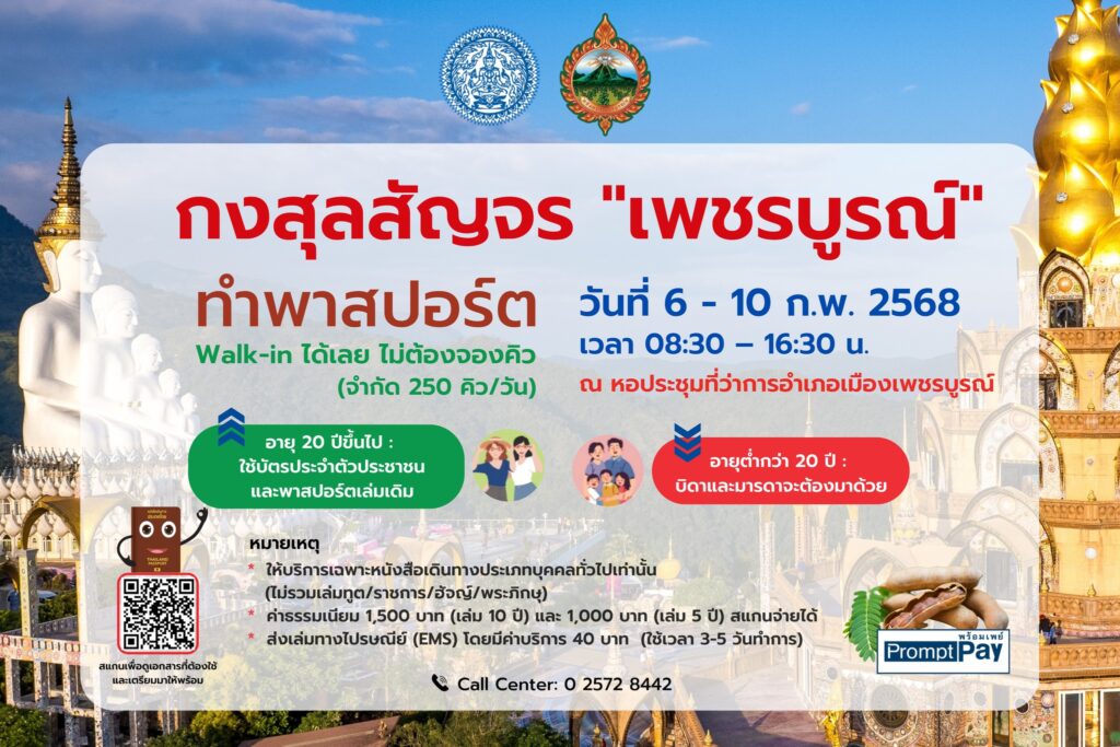 กรมการกงสุล จัดกิจกรรมกงสุลสัญจร “เพชรบูรณ์” ให้บริการทำพาสปอร์ต วันที่ 6 – 10 กุมภาพันธ์ 2568