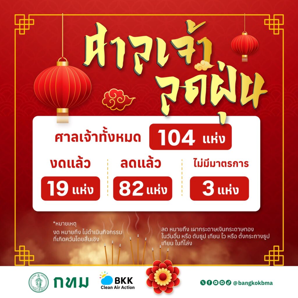 กรุงเทพมหานคร ชวนประชาชนร่วมลดฝุ่นวันตรุษจีน ลด งด จุดธูป เผากระดาษเงินทอง ศาลเจ้าในกรุงเทพมหานคร