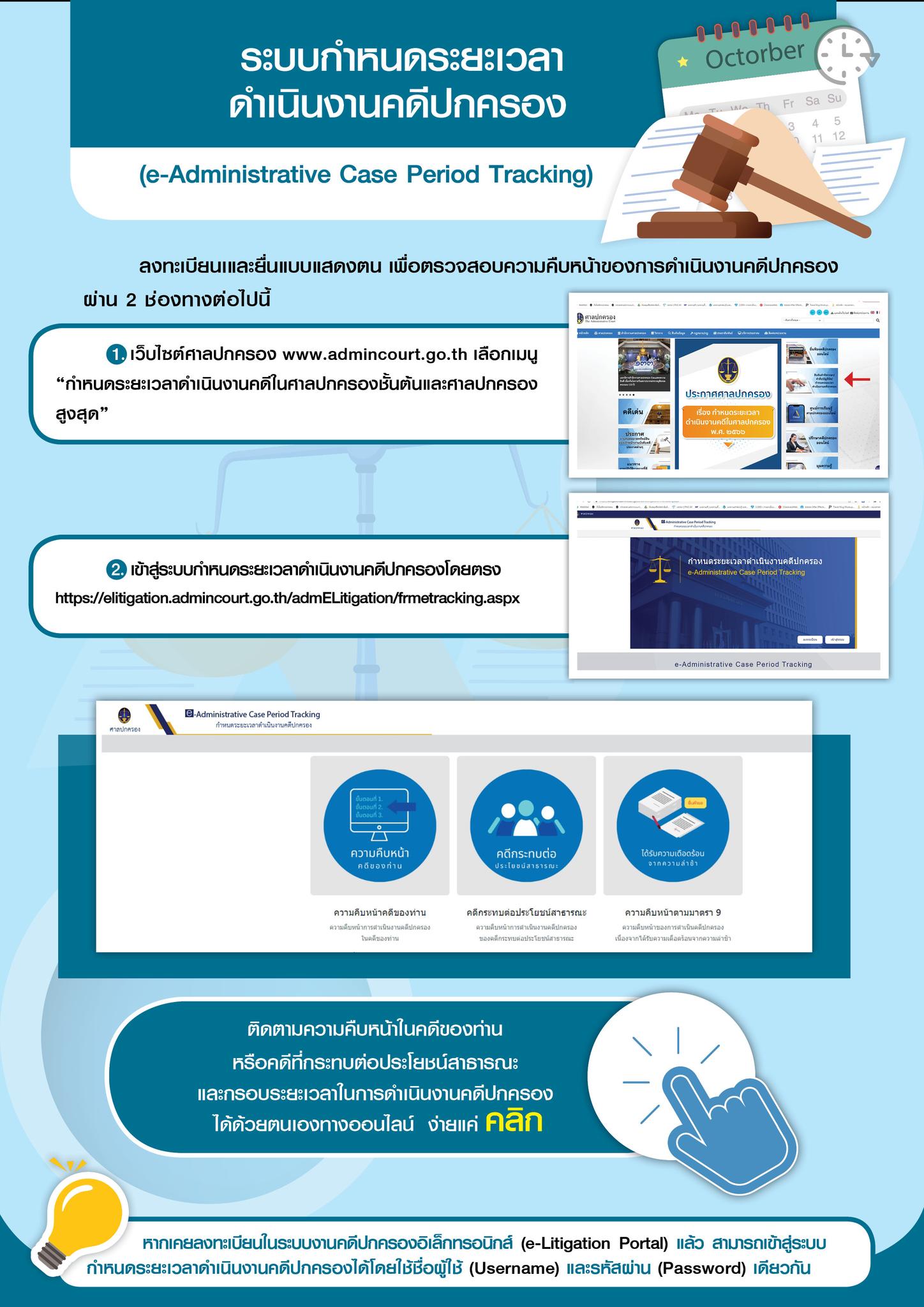 ติดตามคดีด้วยตนเองได้แล้ว ระบบกำหนดระยะเวลาดำเนินงานคดีปกครอง (e-Administrative Case Period Tracking)