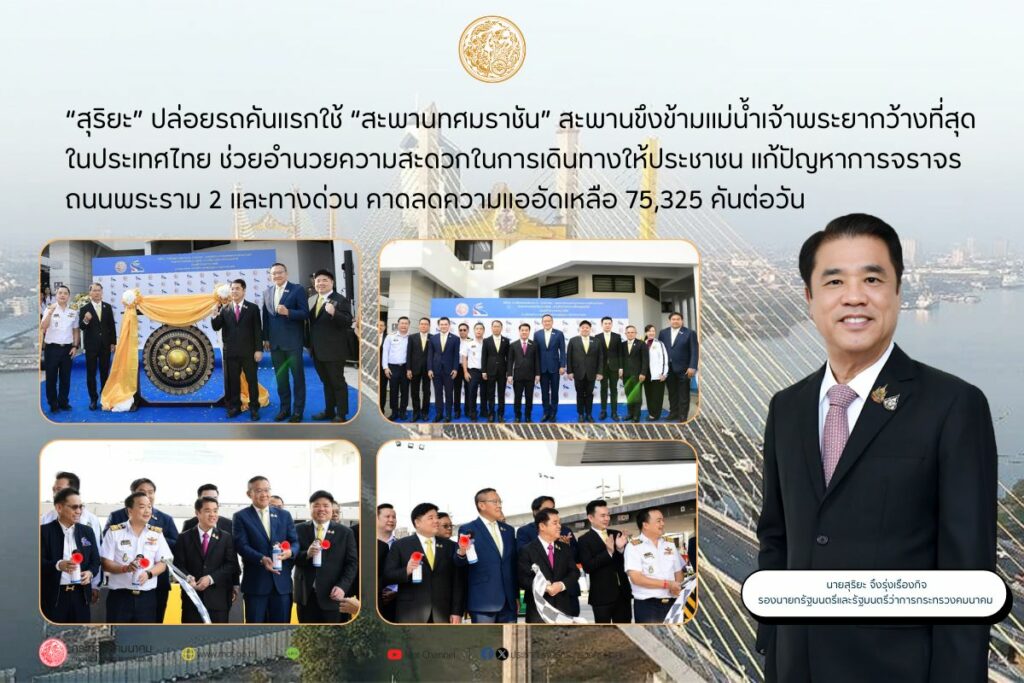 “การเปิดใช้สะพานทศมราชันครั้งนี้จะช่วยเสริมความสมบูรณ์ให้กับโครงข่ายทางพิเศษในพื้นที่กรุงเทพฯ และปริมณฑล ช่วยเพิ่มทางเลือกในการเดินทางและขนส่งสินค้าอย่างรวดเร็ว และเป็นส่วนสำคัญในการพัฒนาโครงสร้างพื้นฐานของประเทศเพื่อขับเคลื่อนเศรษฐกิจและยกระดับคุณภาพชีวิตของประชาชน” นายสุริยะ กล่าว