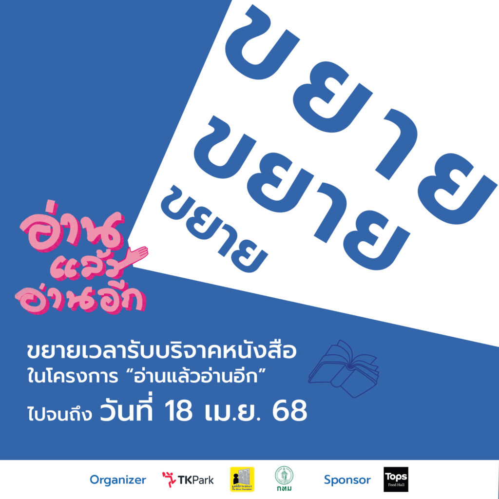 TK Park แจ้งขยายเวลารับบริจาคหนังสือ ในโครงการ “อ่านแล้วอ่านอีก” ไปจนถึงวันที่ 18 เม.ย. 68