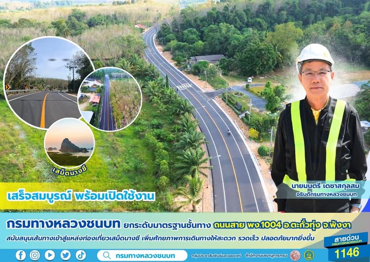 กรมทางหลวงชนบท ได้ก่อสร้างถนนทางหลวงชนบทสาย พง.1004 อ.ตะกั่วทุ่ง จ.พังงา เสร็จสมบูรณ์แล้ว