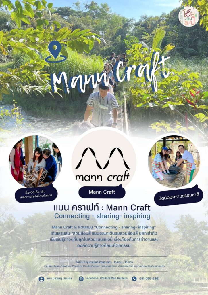 – เดินเลาะเล่น “สวนย้อมสี” พาเดินชมสวนย้อมสีบอกเล่าถึงพืชพันธุ์ต่างๆที่ปลูกในสวนแมนแห่งนี้ เชื่อมโยงกับการทำงานและองค์ความรู้ทางศิลปะหัตถกรรม