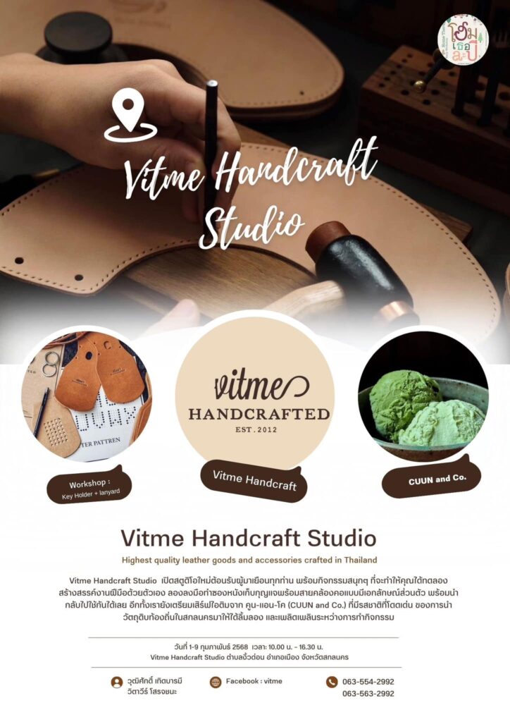 ทำที่เก็บกุญเเจจากหนังเเท้ย้อมครามพร้อมสายคล้องคอ (Key Holder + lanyard) พร้อมเสิร์ฟไอติมจาก คูน-แอน-โค (CUUN and Co.) ที่มีรสชาติโดดเด่นด้วยการนำวัตถุดิบท้องถิ่นในสกลนครมาให้ผู้เข้าร่วมกิจกรรมได้ลิ้มลอง