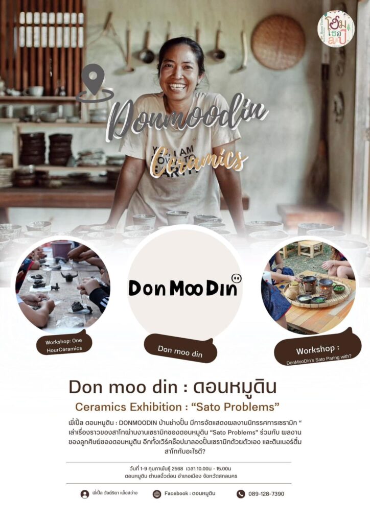 – DonMooDin’s Sato Paring with? ดื่มสาโทกับอะไรดี เปิดประสบการณ์สาโทวิถีช่างปั้น สัมผัสประสบการณ์อาหารกับภาชนะของดอนหมูดิน พร้อมเสริฟอาหารค่ำ ท่ามกลางอากาศหนาวลมสกลนคร