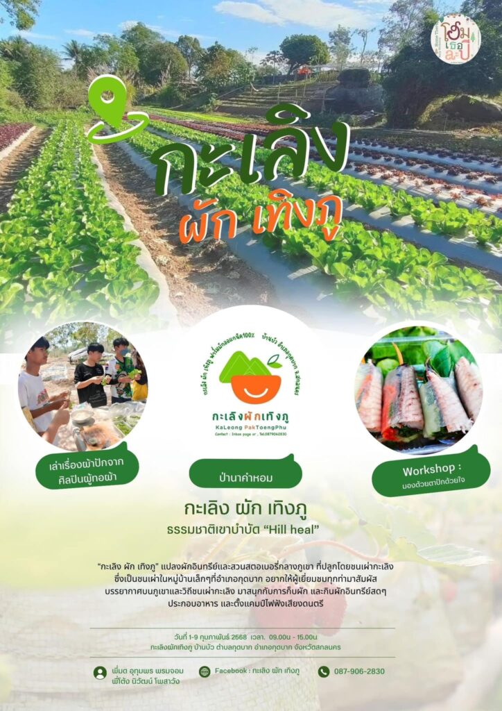 - ช่องทางการติดต่อ : Facebook Page : กะเลิง ผัก เทิง ภู หรือ โทร. 087 906 2830 (คุณอุทุมพร พรมจอม)