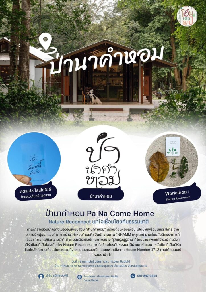 - ช่องทางการติดต่อ : Facebook Page : ป่านาคำหอม Pa Na Come Home หรือ โทร. 081 847 3399 (คุณรติกร ตงศิริ)