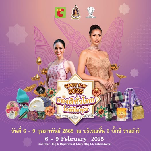 กระทรวงวัฒนธรรม ร่วมกับบิ๊กซี ซูเปอร์เซ็นเตอร์ จัดงาน “CPOT Fair 2025 ของดีทั่วไทย ใกล้มือคุณ” เปิดตลาดผลิตภัณฑ์วัฒนธรรมไทยสู่สากล ผลักดันผลิตภัณฑ์วัฒนธรรมไทย (Cultural Product of Thailand: CPOT) สู่ตลาดค้าปลีกขนาดใหญ่ วันที่ 6 – 9 กุมภาพันธ์ 2568 ณ บริเวณ ชั้น 3 บิ๊กซีราชดำริ กรุงเทพฯ โดยยกทัพสินค้า CPOT จากทั่วประเทศ มาให้เลือกช้อปพร้อมกิจกรรมส่งเสริม Soft Power ไทย กระตุ้นเศรษฐกิจชุมชน และสร้างโอกาสส่งออกสู่ตลาดโลก