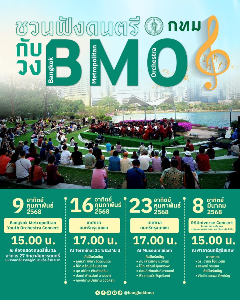 กรุงเทพมหานคร ชวนฟังดนตรี กับวง BMO (Bangkok Metropolitan Orchestra) วันอาทิตย์ที่ 9,16,23 กุมภาพันธ์ และ 8 มีนาคม 2568