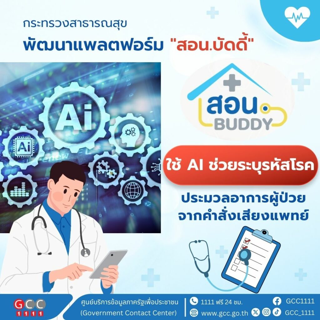 นพ.พงศธร พอกเพิ่มดี รองปลัดกระทรวงสาธารณสุข เปิดเผยว่า ปัจจุบันปัญญาประดิษฐ์ (AI) เป็นเทคโนโลยีที่เข้ามามีบทบาทสำคัญในการพัฒนาและปรับปรุงระบบบริการขององค์กรทั้งภาครัฐและเอกชน ในส่วนของกระทรวงสาธารณสุข ได้มีการนำ AI มาบูรณาการทางการแพทย์และสาธารณสุข เพื่อช่วยเพิ่มประสิทธิภาพและความแม่นยำ ทั้งในการวินิจฉัยโรค การดูแลรักษาผู้ป่วย และลดภาระของบุคลากรทางการแพทย์ เช่น การใช้ AI ช่วยประมวลผลและคัดกรองภาพทางการแพทย์ในระบบ MOPH Imaging HUB ของกระทรวงสาธารณสุข เป็นต้น ล่าสุด ได้นำ AI เข้ามาประยุกต์ใช้ในแพลตฟอร์ม “สอน.บัดดี้” (Buddy Care) เพื่อการบริการและจัดเก็บข้อมูลสุขภาพที่ถูกต้องแม่นยำมากยิ่งขึ้น โดย สอน.บัดดี้ ถูกพัฒนาขึ้นภายใต้โครงการพัฒนาเครื่องมือด้านสารสนเทศเพื่อการขับเคลื่อนงานด้านสุขภาพสำหรับสถานีอนามัยเฉลิมพระเกียรติ 60 พรรษา นวมินทราชินี ในช่วงปี 2565-2566 ระหว่างมูลนิธิพัฒนาสถานีอนามัยเฉลิมพระเกียรติ 60 พรรษา นวมินทราชินี กระทรวงสาธารณสุข และสำนักงานกองทุนสนับสนุนการสร้างเสริมสุขภาพ (สสส.) มุ่งเน้นการใช้งานในหน่วยบริการปฐมภูมิและการดูแลสุขภาพประชาชนเชิงรุก ต่อยอดสู่การใช้ดูแลผู้ป่วยที่บ้าน การเยี่ยมบ้าน และให้บริการสาธารณสุขทางไกล