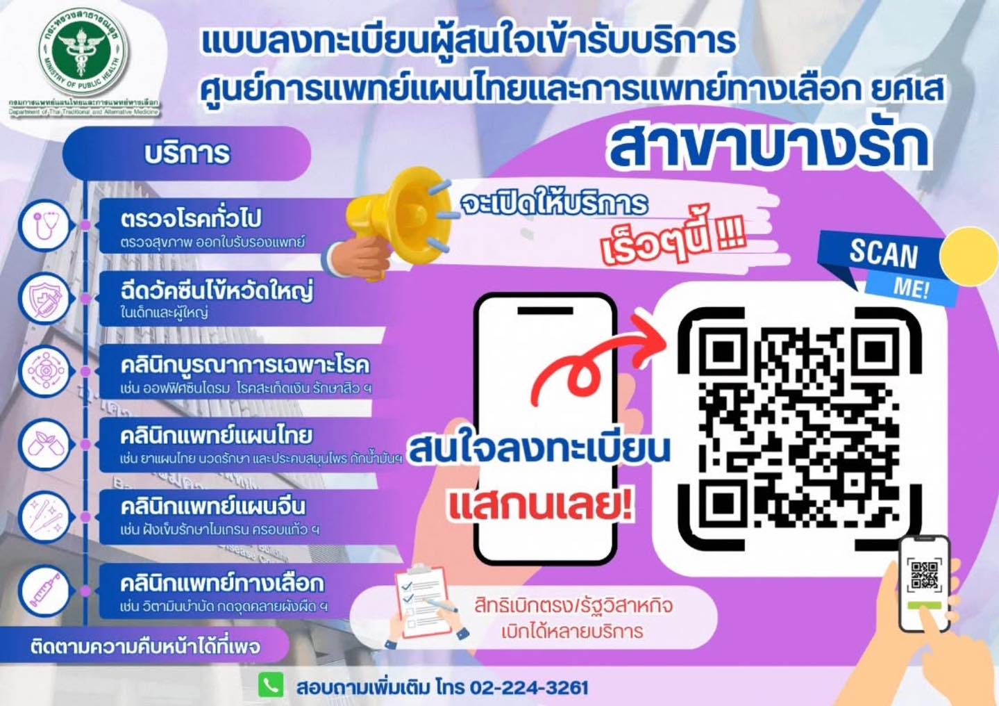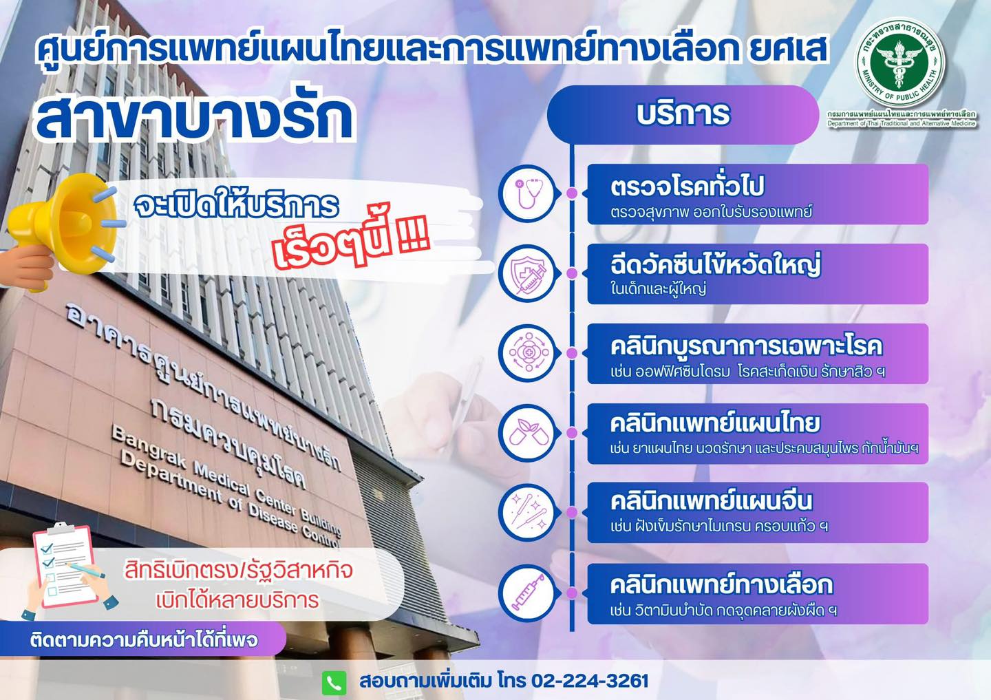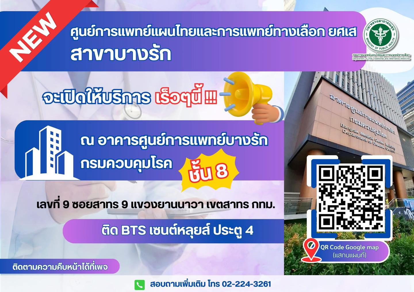 ศูนย์การแพทย์แผนไทยและการแพทย์ทางเลือก ยศเส สาขาบางรัก จะเปิดบริการ เร็วๆนี้