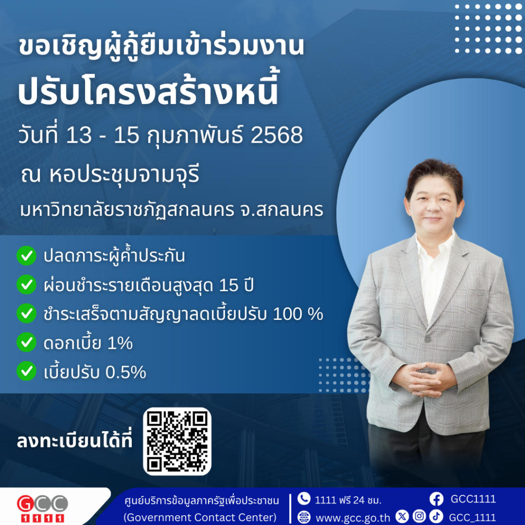 กองทุนเงินให้กู้ยืมเพื่อการศึกษา ขอเชิญผู้กู้ยืมเข้าร่วมงานปรับโครงสร้างหนี้วันที่ 13 – 15 กุมภาพันธ์ 2568 ณ หอประชุมจามจุรี มหาวิทยาลัยราชภัฏสกลนคร จังหวัดสกลนคร