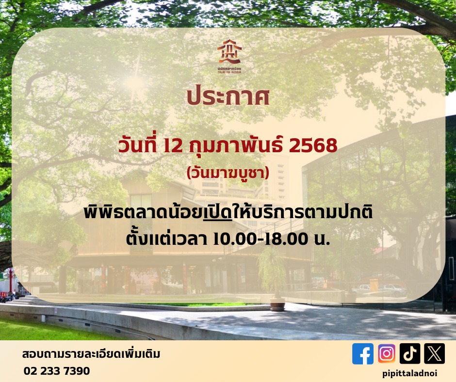 พิพิธตลาดน้อย แจ้งปิดให้บริการ วันที่ 12 กุมภาพันธ์ 2568 เนื่องในวันมาฆบูชา