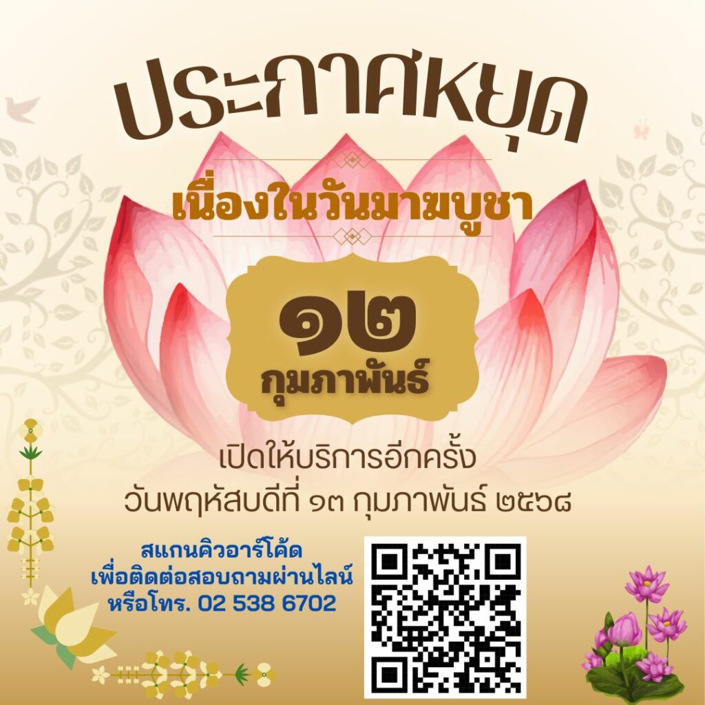 สำนักงานเขตลาดพร้าว ประกาศวันหยุดเนื่องในวันมาฆบูชา วันพุธที่ 12 กุมภาพันธ์ 2568