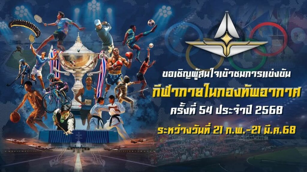 กองบัญชาการกองทัพไทย ขอเชิญชมการแข่งขันกีฬาภายในกองทัพอากาศ ครั้งที่ 54 ประจำปี 2568