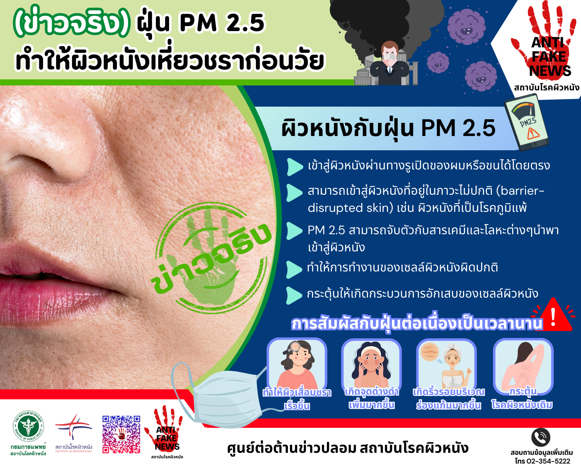 สถาบันโรคผิวหนัง เผยฝุ่น PM 2.5 ทำให้ผิวหนังเหี่ยวชราก่อนวัย