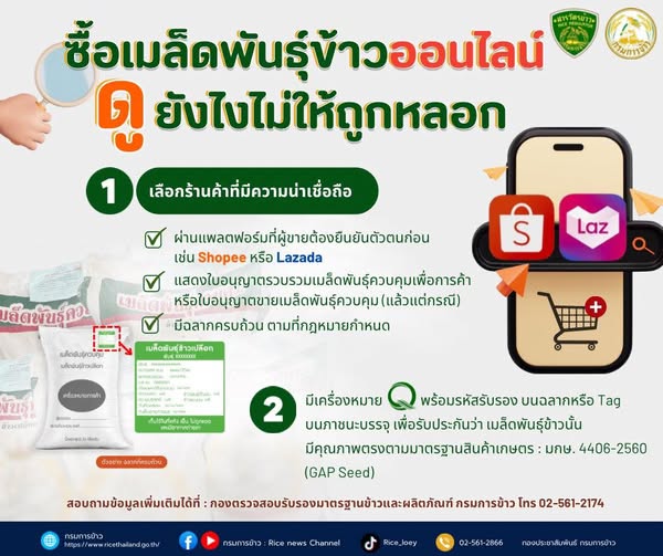 กรมการข้าว แนะนำวิธีการเลือกซื้อเมล็ดข้าวออนไลน์ ดังนี้