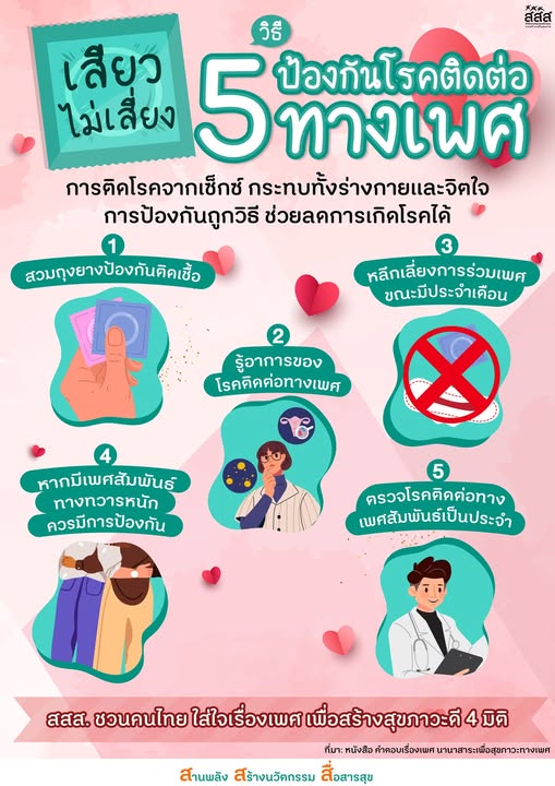 สำนักงานกองทุนสนับสนุนการสร้างเสริมสุขภาพ แนะนำ 5 วิธีป้องกัน โรคติดต่อทางเพศ การติดโรคจากเซ็กซ์ กระทบทั้งร่างกาย และจิตใจ การป้องกันถูกวิธี ช่วยลดการเกิดโรคได้