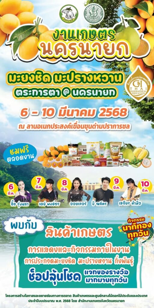 - สำนักงานเกษตรจังหวัดนครนายก จัดงานเกษตรนครนายก ประจำปี 2568