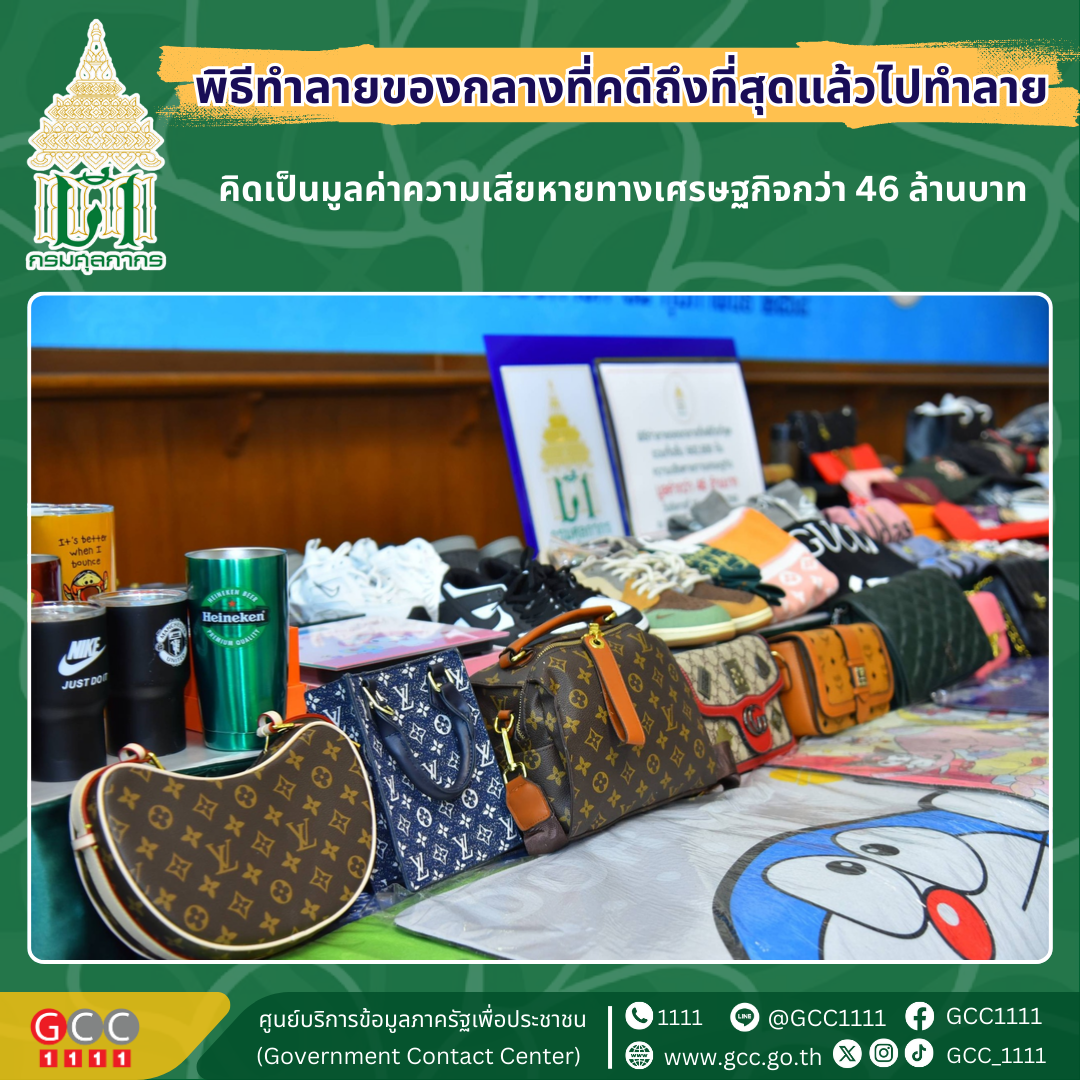 กรมศุลกากรจัดพิธีทำลายของกลางที่คดีถึงที่สุดแล้วไปทำลายคิดเป็นมูลค่าความเสียหายทางเศรษฐกิจกว่า 46 ล้านบาท