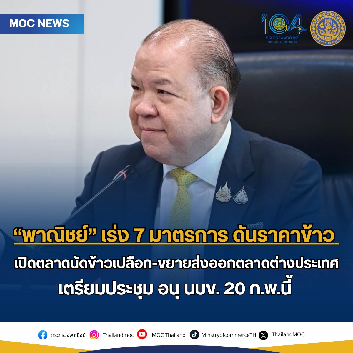 กระทรวงพาณิชย์ เร่ง 7 มาตรการ ดันราคาข้าว เปิดตลาดนัดข้าวเปลือก – ขยายส่งออกตลาดต่างประเทศ