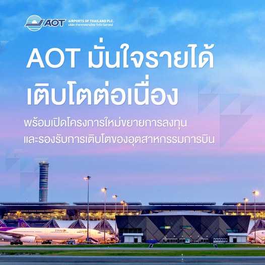AOT มั่นใจรายได้เติบโตต่อเนื่อง พร้อมเปิดโครงการใหม่ขยายการลงทุนและรองรับการเติบโตอุตสาหกรรมการบิน