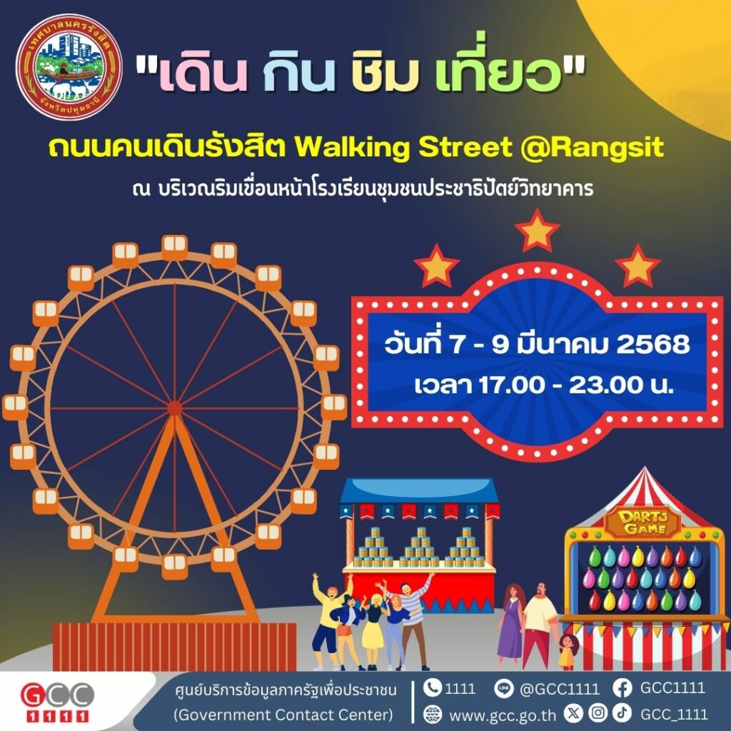 • เทศบาลนครรังสิต ขอเชิญร่วมงาน ” เดิน กิน ชิม เที่ยว ” ถนนคนเดินรังสิต Walking Street @Rangsit