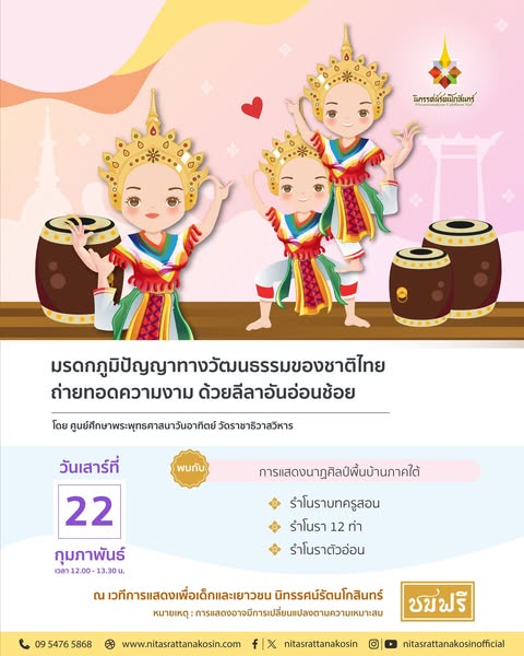 - นิทรรศน์รัตนโกสินทร์ จัดเวทีการแสดงเพื่อเด็กและเยาวชน ในวันเสาร์ที่ 22 กุมภาพันธ์ 2568