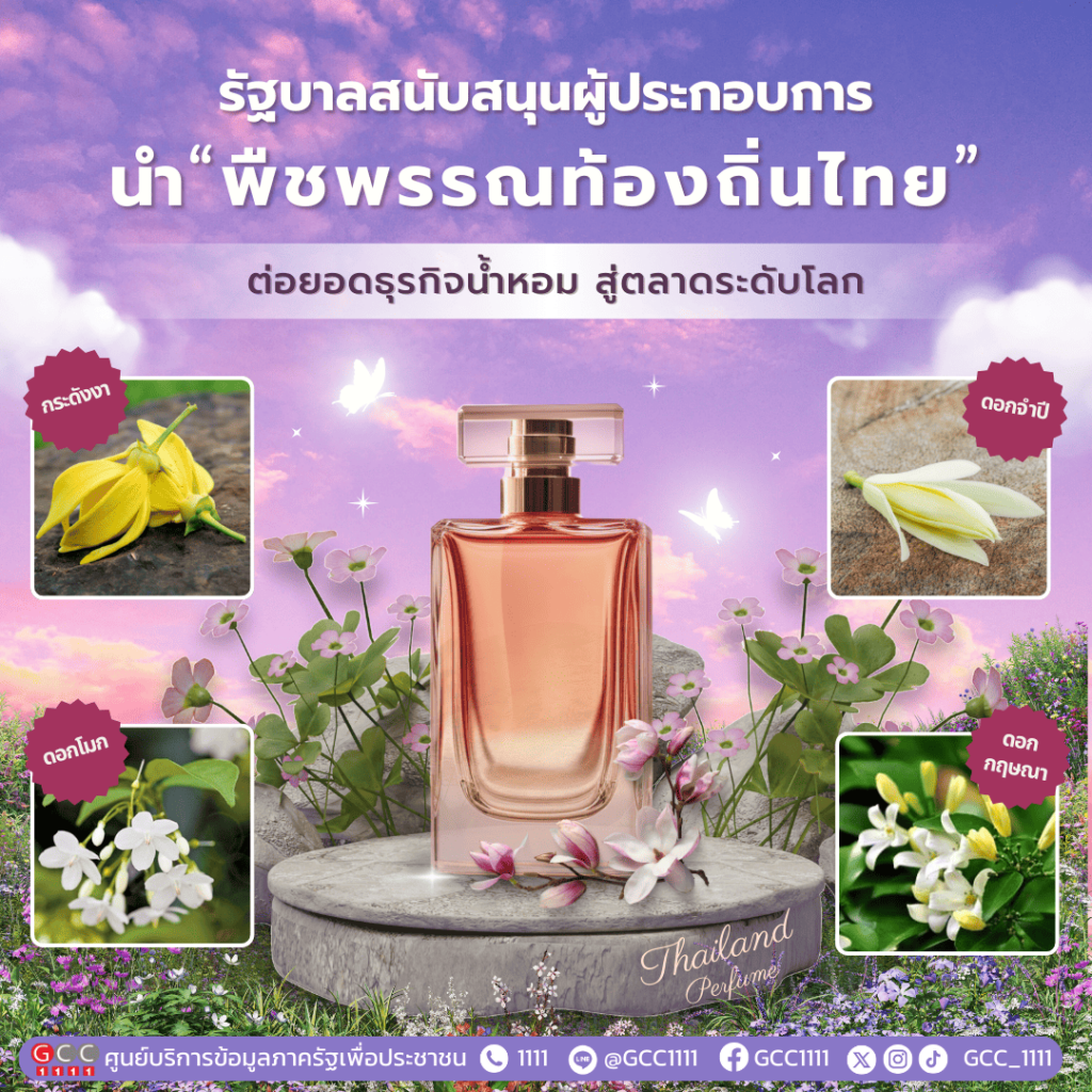 รัฐบาล ผลักดันผู้ประกอบการนำ “พืชพรรณท้องถิ่น” ไปต่อยอดธุรกิจน้ำหอม สร้างจุดขายเอกลักษณ์แบบไทย สู่ตลาดระดับโลก